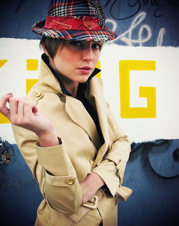 { wearing: self-embellished vintage hat, the glamourai halcyon carcanet necklace, l'ecole des femmes trench coat, theory shirtdress, coach boots }